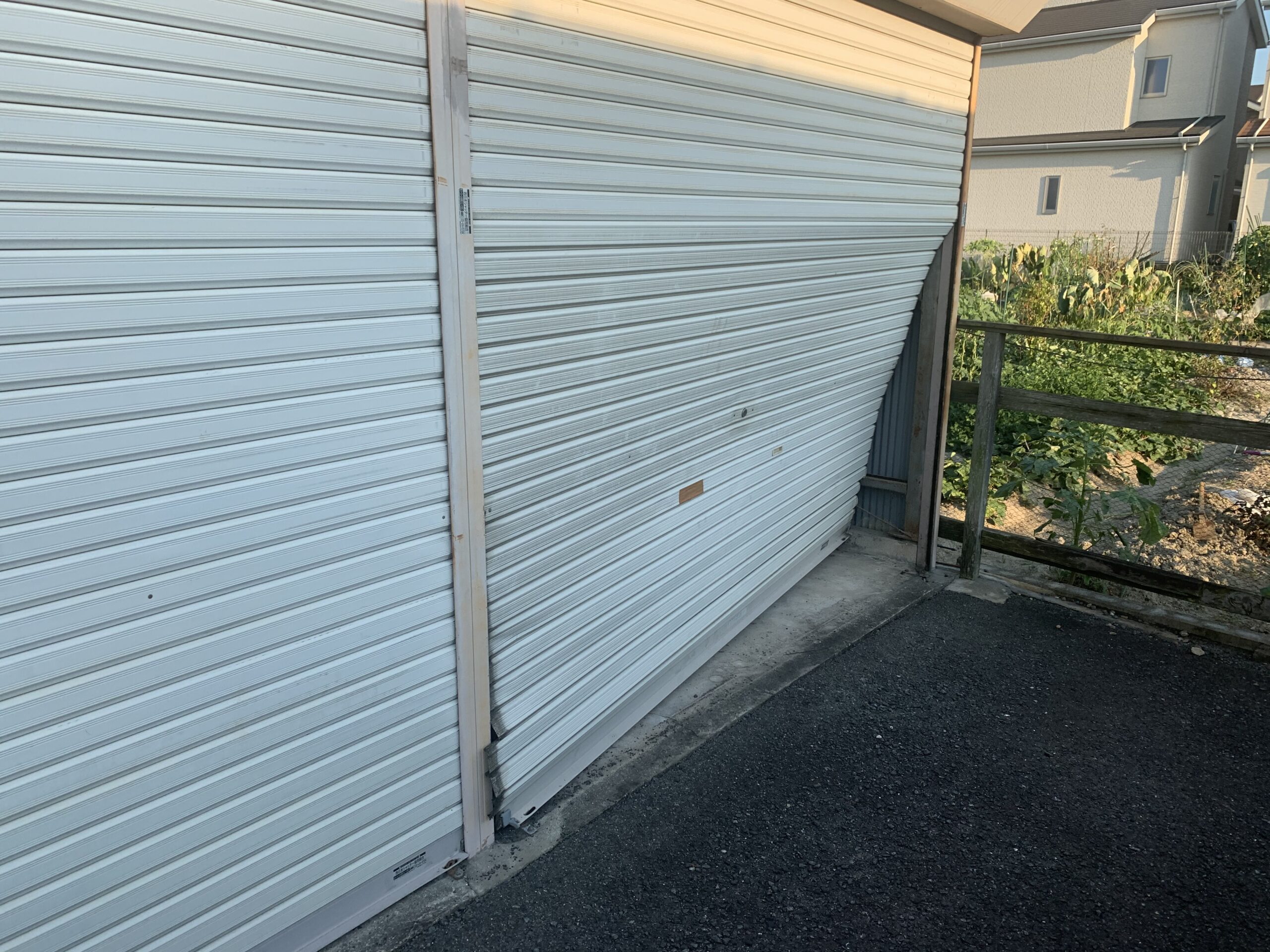 【修理】大阪府松原市 ガレージ軽量シャッタースラットはみ出し修理