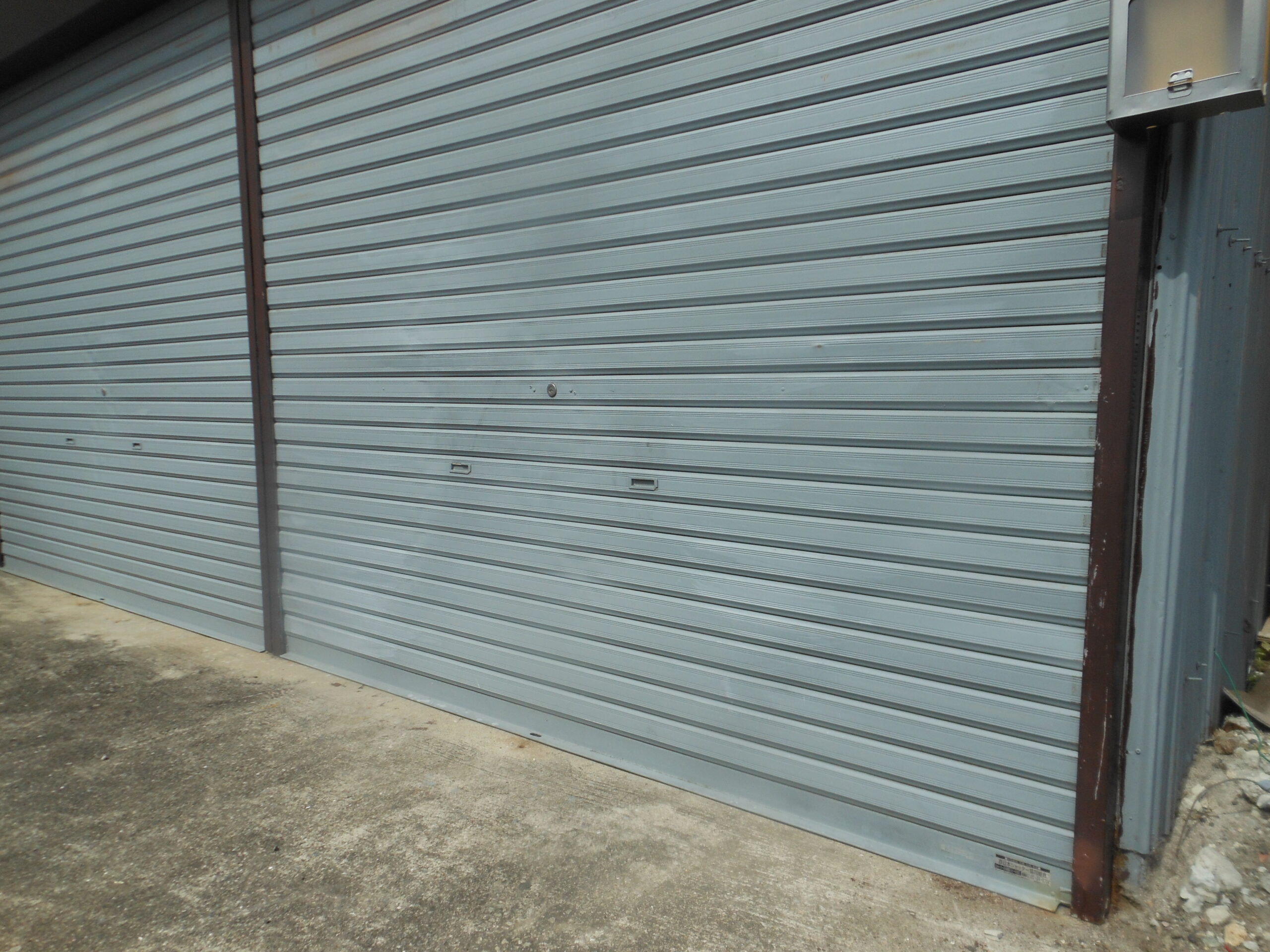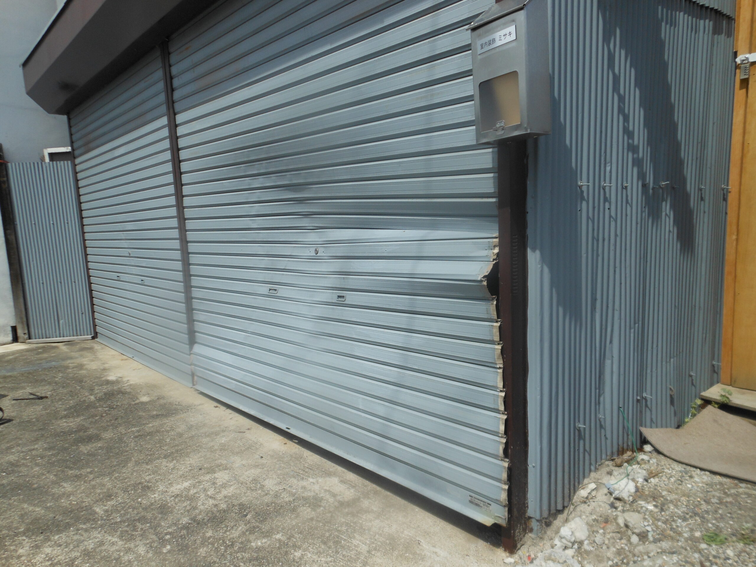 シャッター修理(手動シャッター)大阪府堺市西区 ガレージ軽量シャッタースラットはみ出し修理