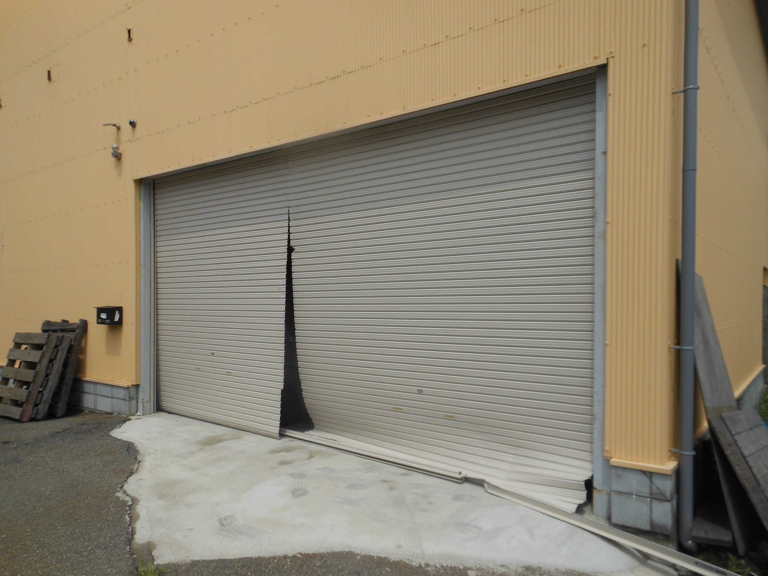 スラットを至急復旧しシャッターも開閉できるようになりました